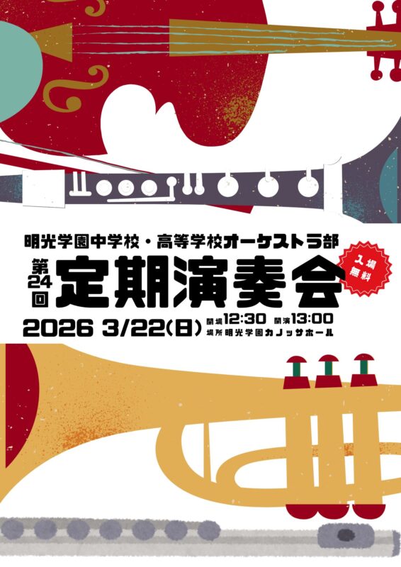 明光学園中学校・高等学校オーケストラ部による「第24回定期演奏会」を下記の通り開催いたします。